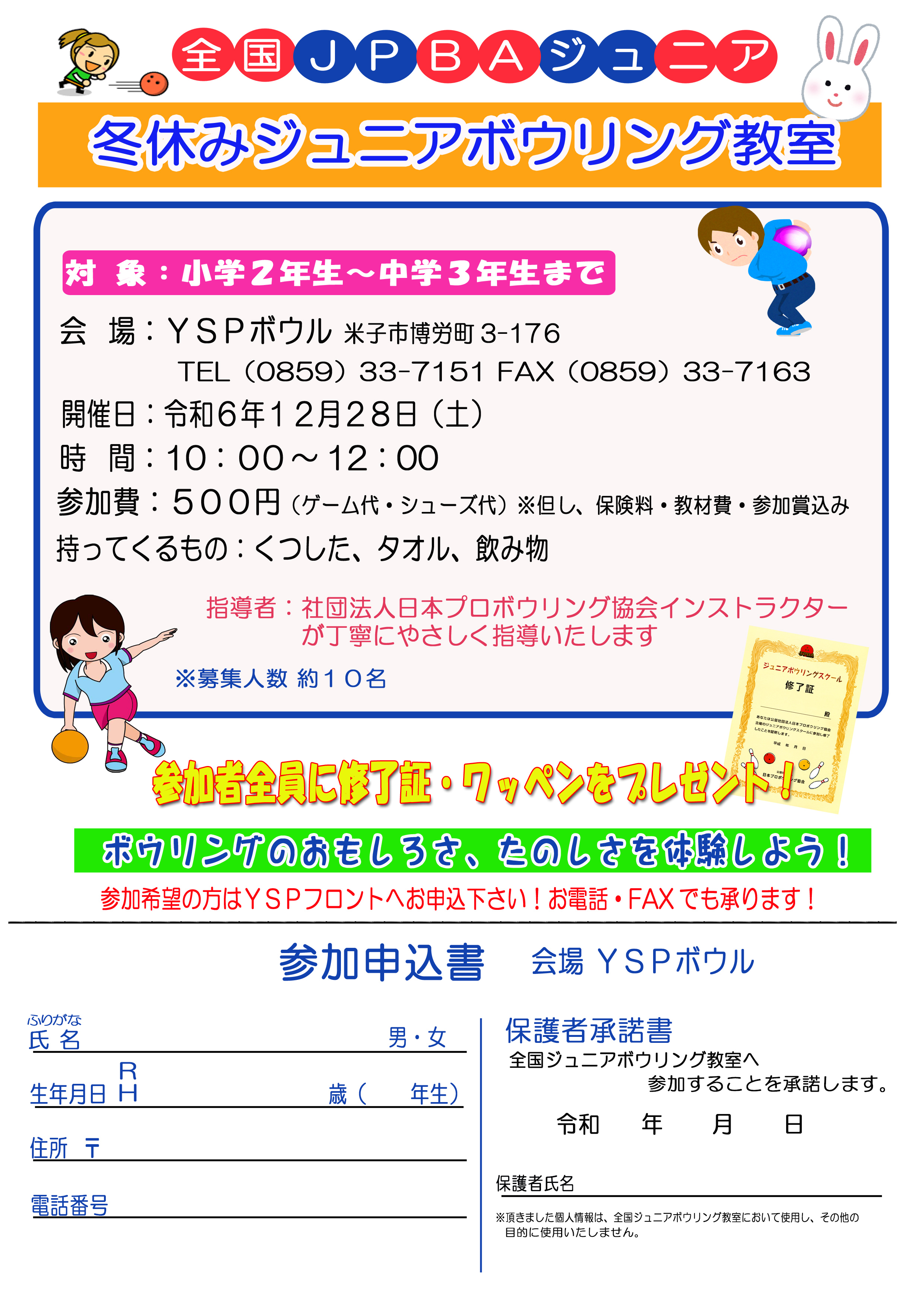 R6.12.28(土)10:00~12:00 ジュニアボウリング教室を開催します!