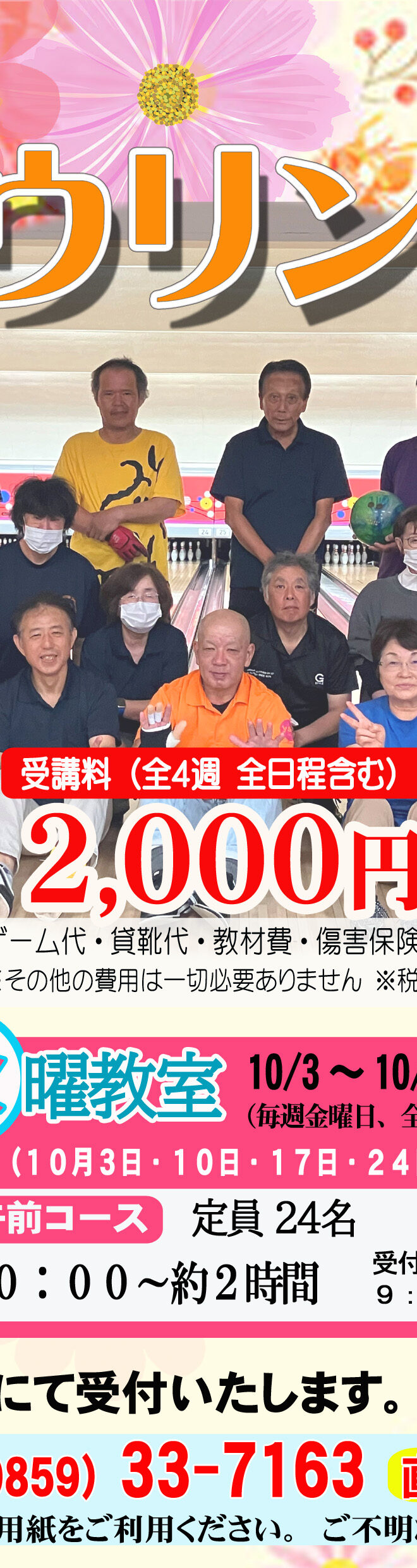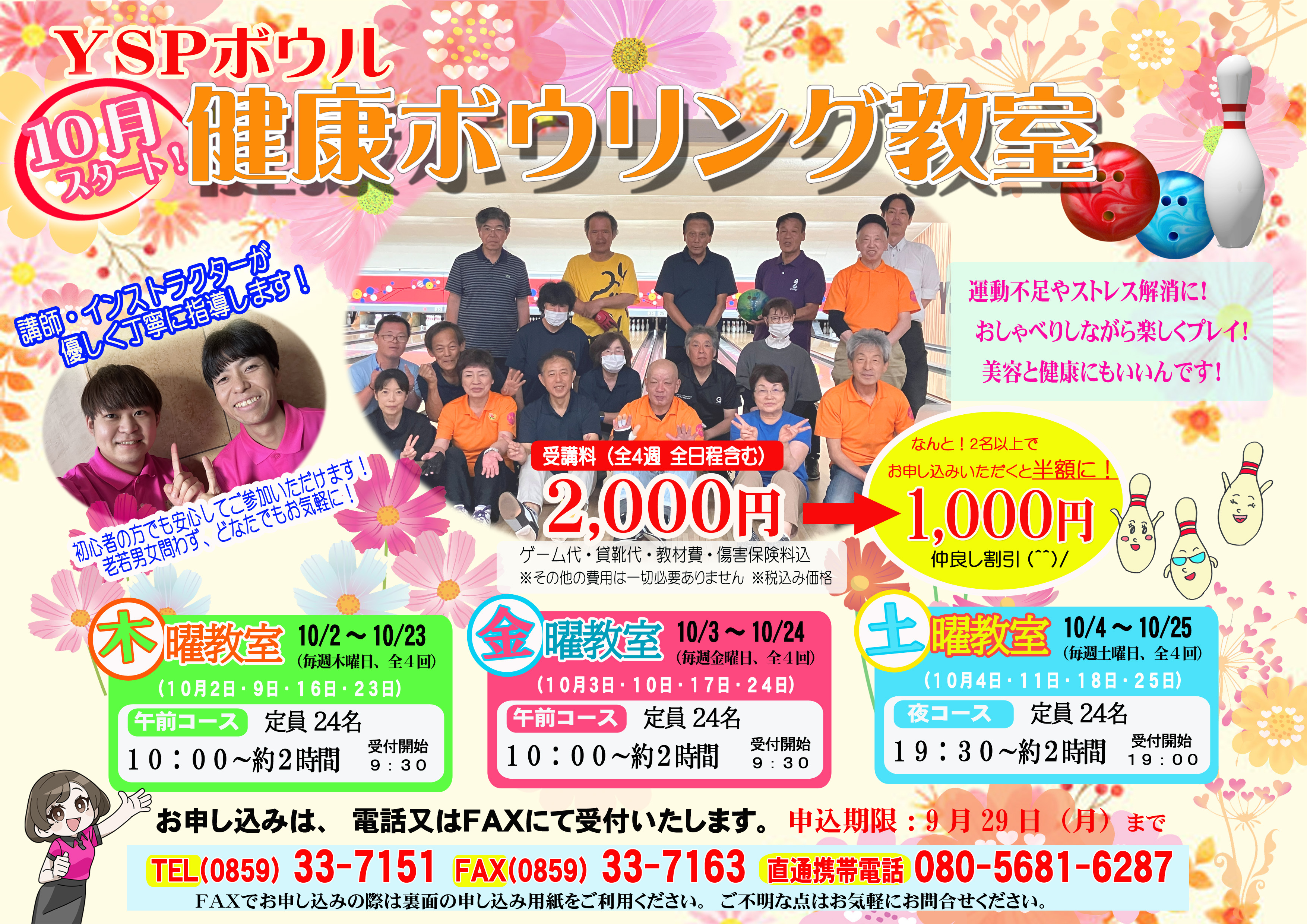 (お問い合わせ・申込先)YSPボウル TEL(0859)33-7151 FAX(0859)33-7163 直通携帯電話(080)5681-6287