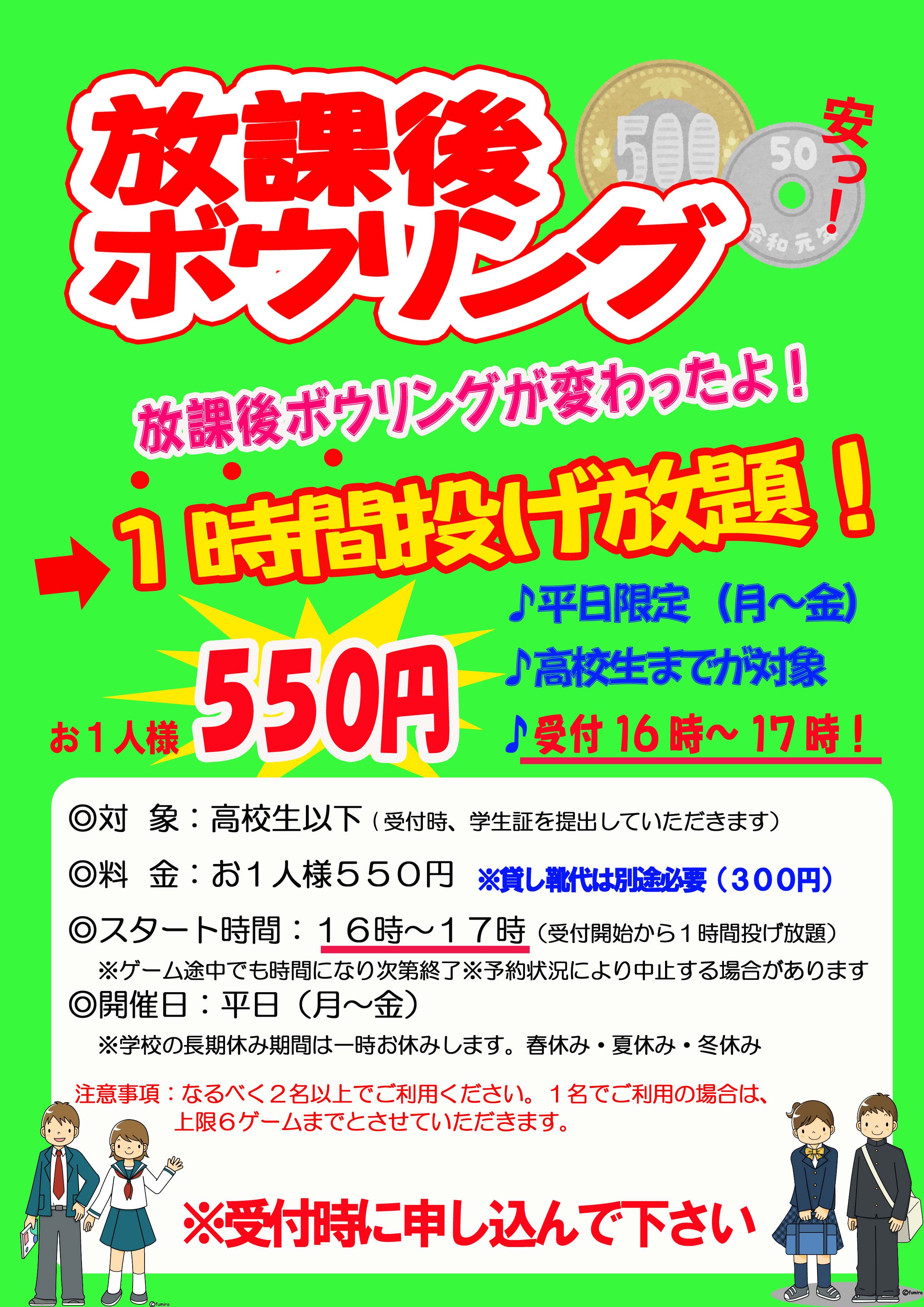 R8.1.13より、放課後ボウルを再開いたします。
